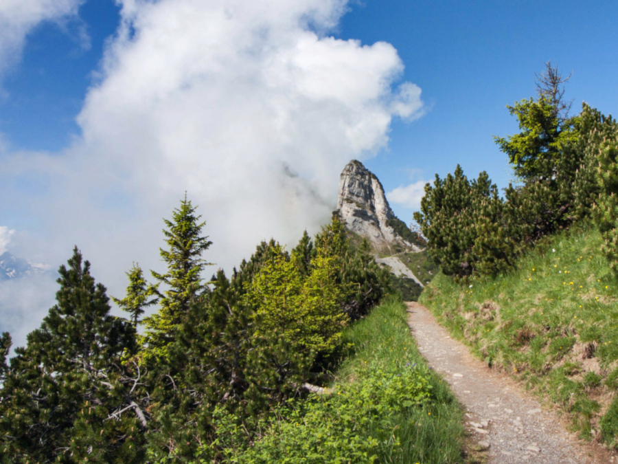 Begib dich auf eine Reise durch die Erdgeschichte auf dem Geologischen Panoramaweg vom Hohen Kasten zur Saxer Lücke, vorbei am Staubern. Mit über 300 Gipfeln in der Ferne kannst du die Aussicht auf das Rheintal, den Alpstein und das Appenzellerland in Ru